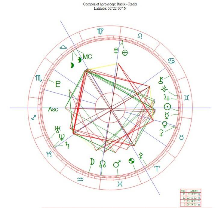 Het maken van de horoscoop (zie bovenstaand plaatje voor een voorbeeld van een composiethoroscoop) gaat tegenwoordig heel eenvoudig: op de laptop. Het enige dat je daarvoor nodig hebt is geboortedatum, -tijd en -plaats. De horoscoop geeft dan een "snap-shot" van de stand van de planeten ten tijde van je geboorte.